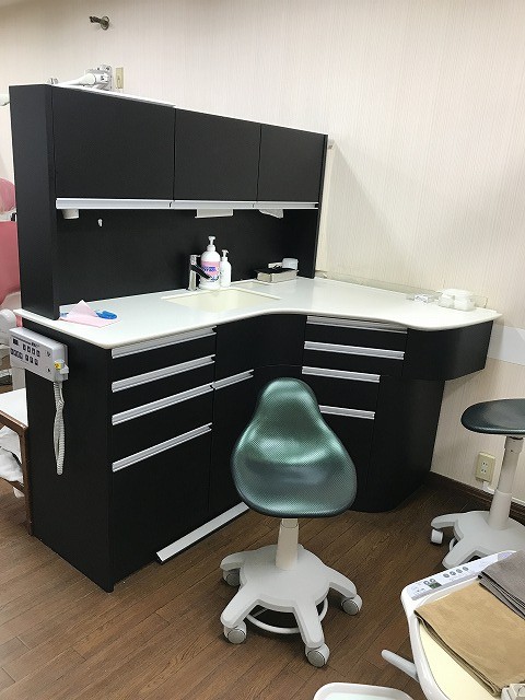 15年ほど前に診療台4台中、2台入れ替える時同時に2台白のキャビネットに買い替えました。