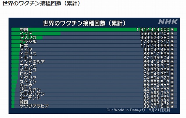 日本のワクチン接種回数が1億1千万回を超え