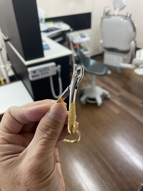 ↑これは京都の歯科医師が精巧に作った抜歯鉗子のキーホルダーなんですよ。