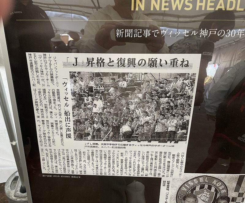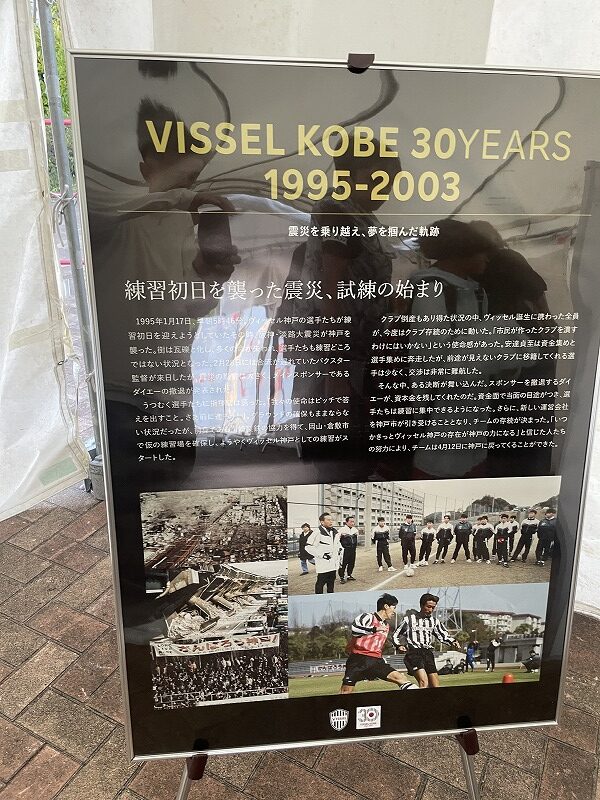 VISSEL神戸30周年記念チャリティーマッチLEGENDS MATCHの会場前には、VISSEL神戸30年の歴史のパネル展が開かれていました。