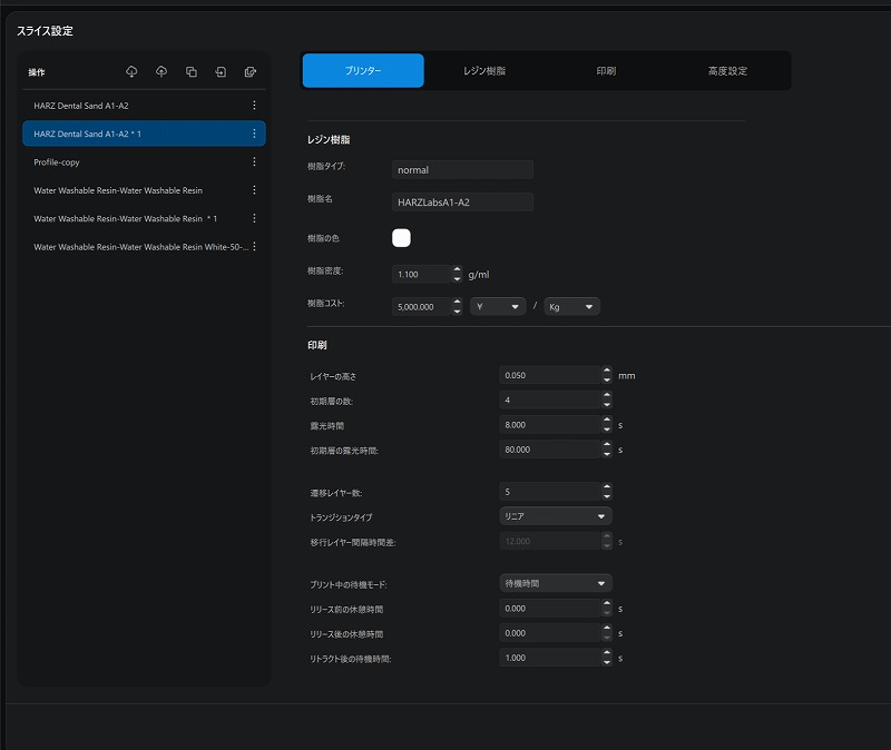 歯科用のレジンを購入したものの私が使用している3Dプリンターでそのレジンを使用するにはパラメーターなるものを変更しなくてはなりません。
