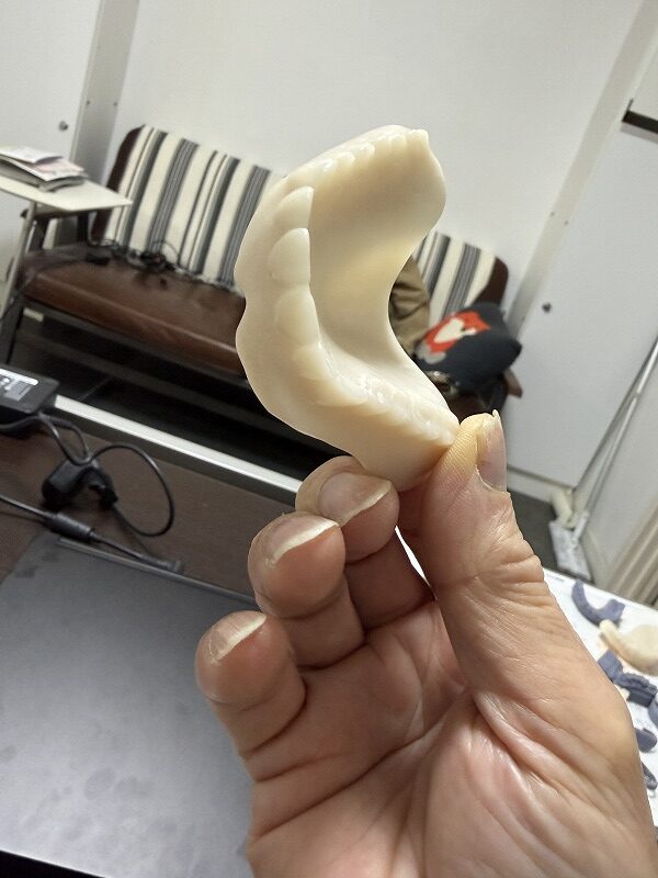 何とかプリントすることができましたが実際に患者様の口腔内に入れてみないとどの程度変形しているのかわかりません。