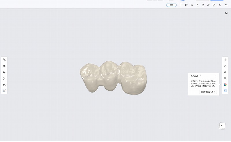 CADソフトを使用するとパソコン上で仮の歯を作ることができます。