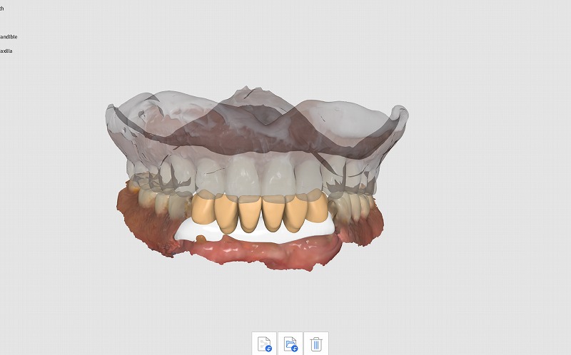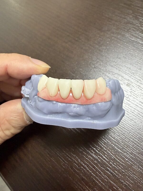 前歯6本を模型上で抜歯し、事前に前歯6本を用意しておき、抜歯と同時に使用中の入れ歯に継ぎ足していくという治療方法を取らなければなりません。