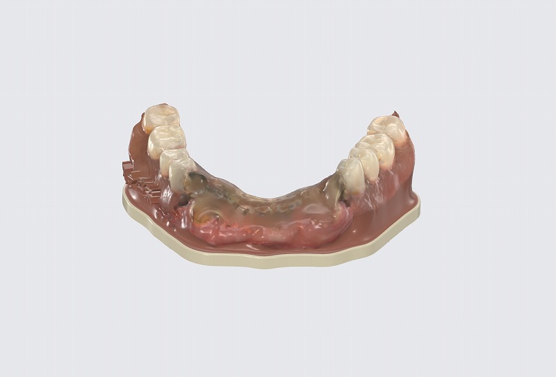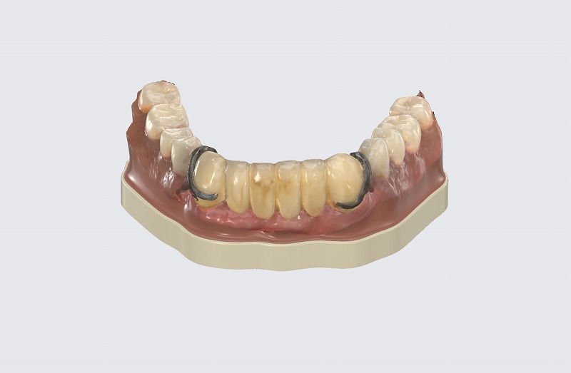 下前歯6本ブリッジで両奥が入れ歯の患者様。