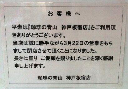 もう30年近く珈琲の青山はあったと思います。とてもお世話になりました。