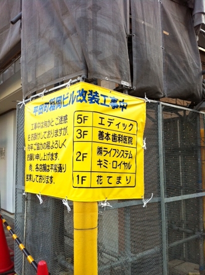善本歯科医院のビルは、現在外壁の改装工事中。