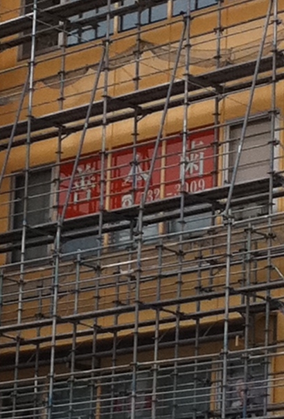 でもまだ足場が組まれていて、カーテンを開ける事はできない状態。